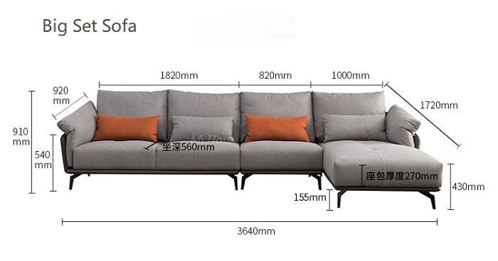 Size: big set 3640*1720*910mm, small set 2820*1720*910mm, three-seater 2100*920*910mm, two-seater 1600*920*910mm, single 1050*920*910mm