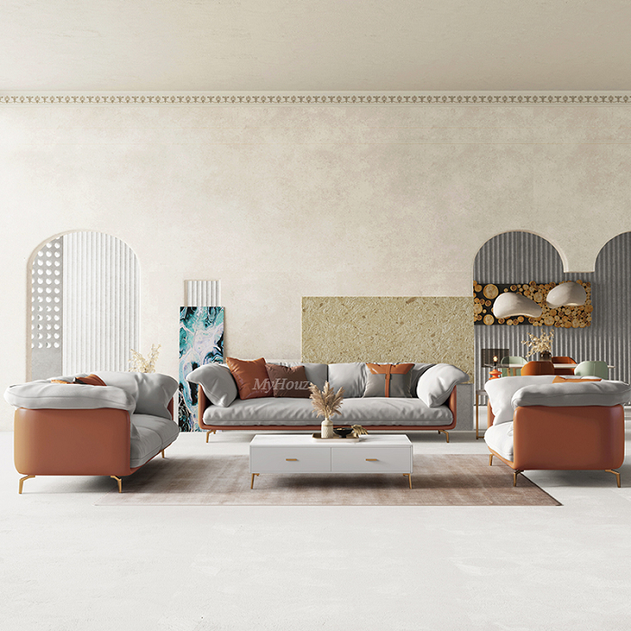Materials: leathaire fabric + high rebound sponge + metal feet + pinevood frame