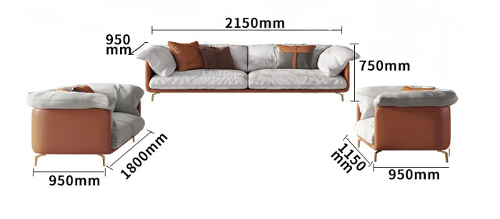 Three-seater Sofa: 2150*950*750mm