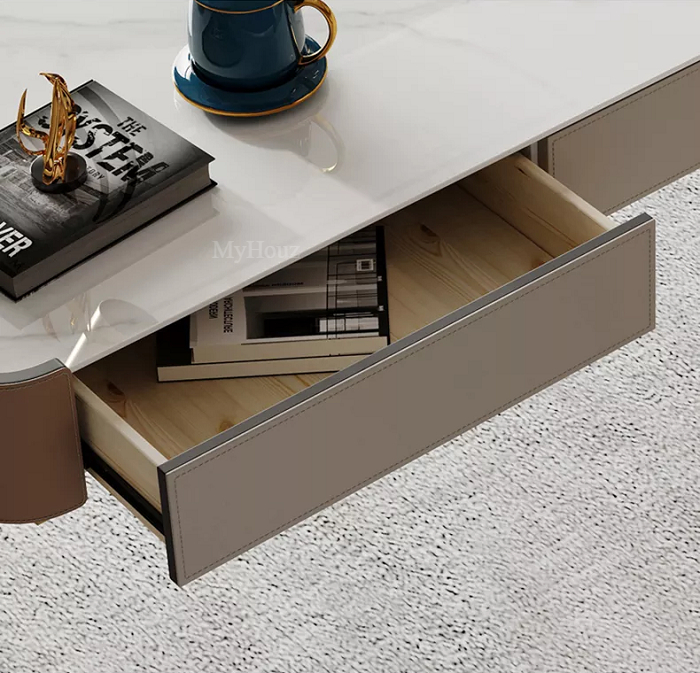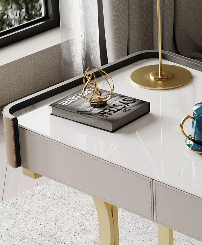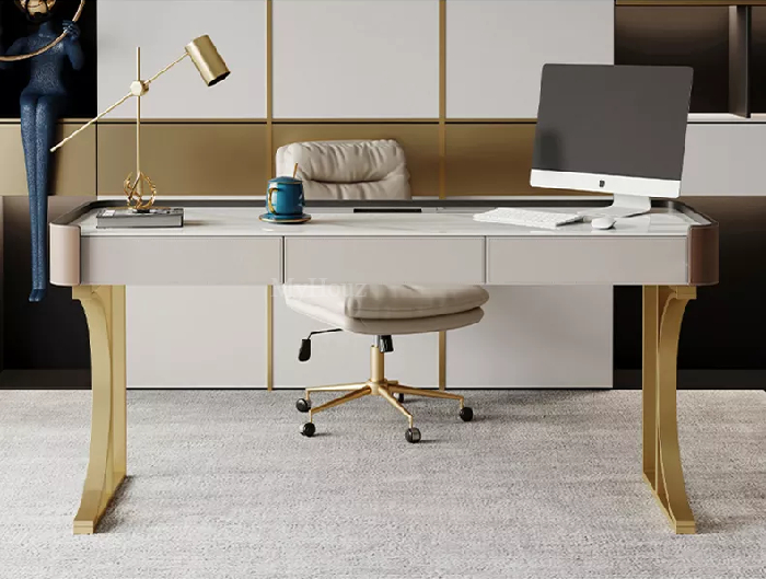 Light Luxury Sintered Stone Leather Metal Office Table MJMT-K813A