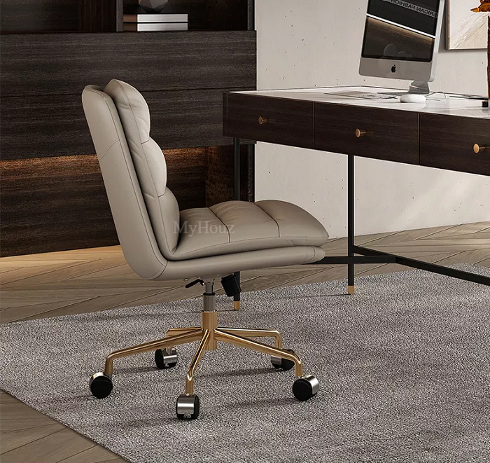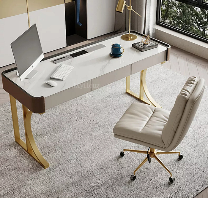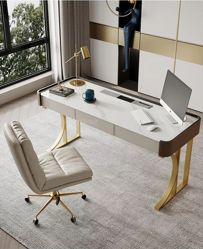 Light Luxury Sintered Stone Leather and Metal Office Table and Chair