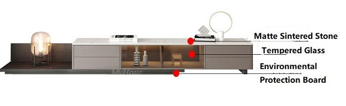 Materials: Lauren white gold matte sintered stone + environmental protection board + metal feet