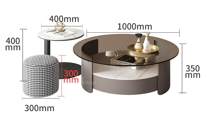 Size: Table: 1000*1000*350mm, End Table: 400*400*400mm, Stool: 300*300*300mm