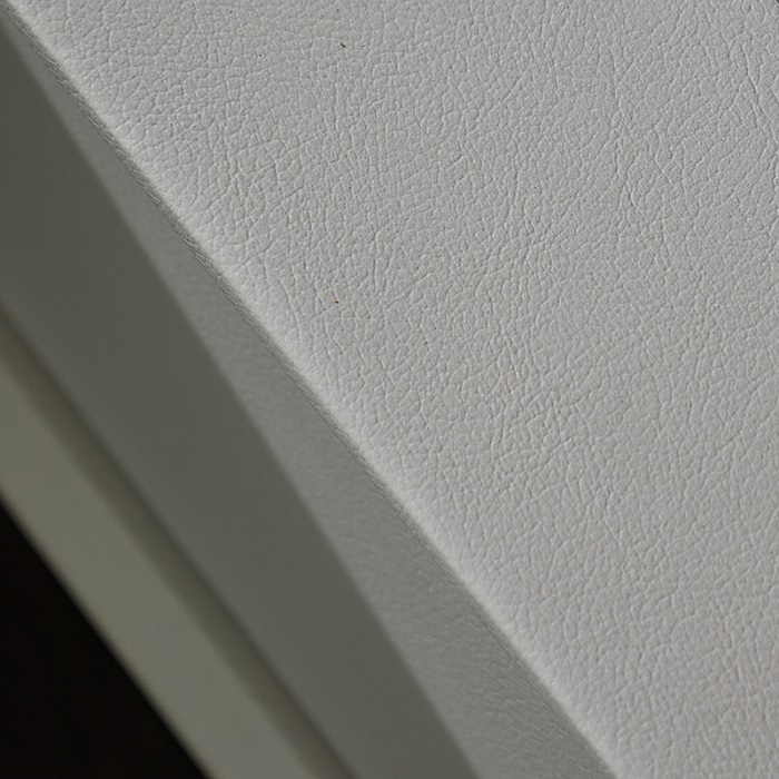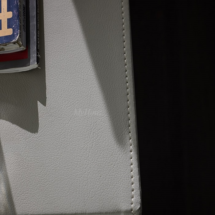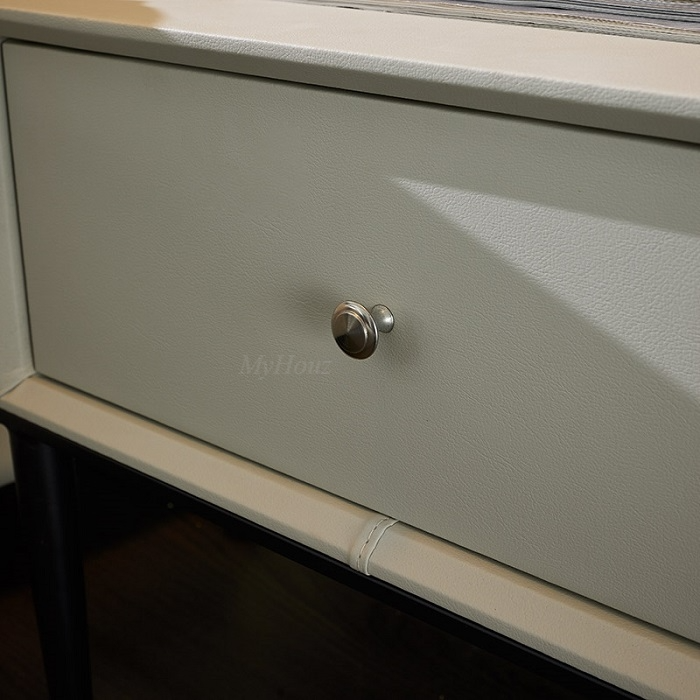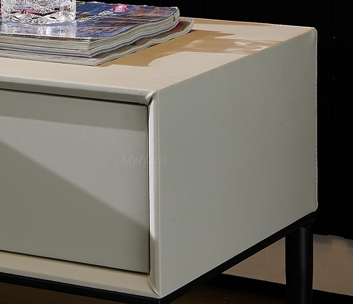 Materials: HDF microfiber leather + pinevood drawer + metal feet