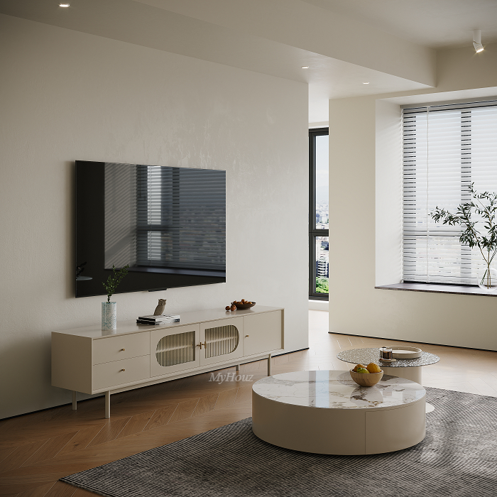 Materials: matte cream lacquered + environmental protection board +tempered glass