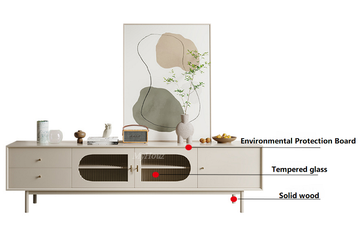 Materials: matte cream lacquered + environmental protection board + solid wood feet