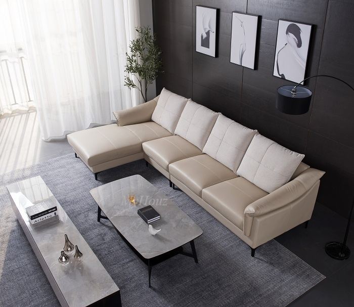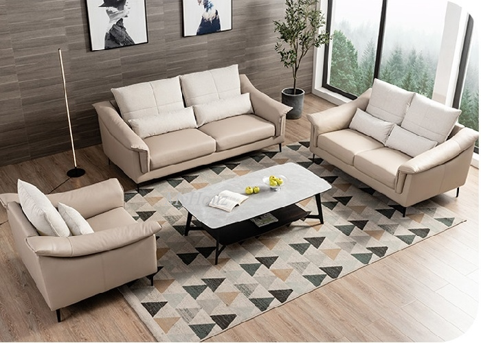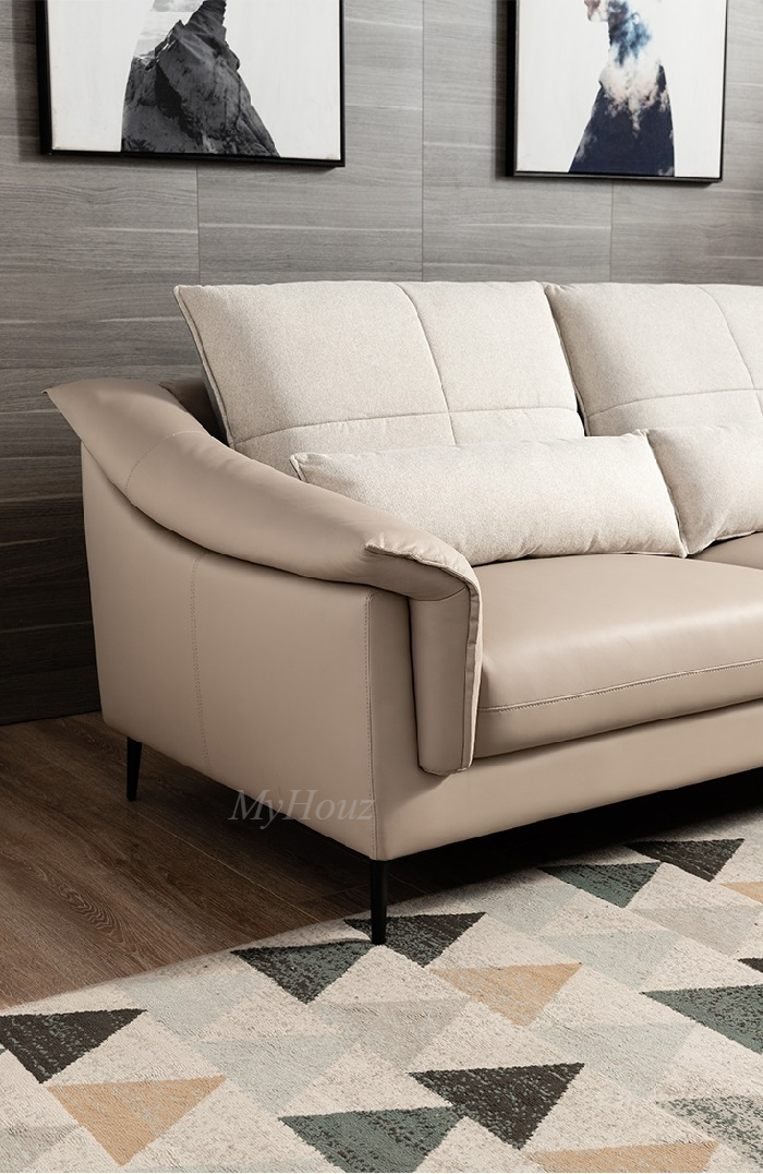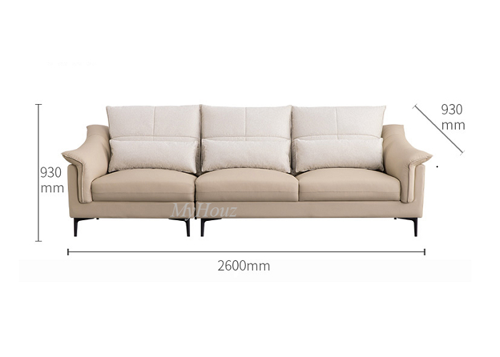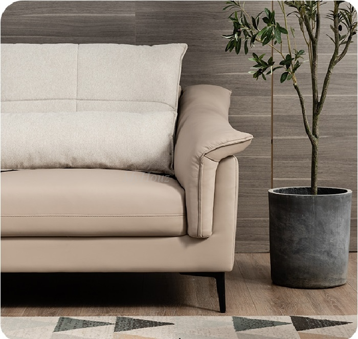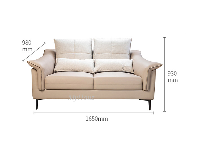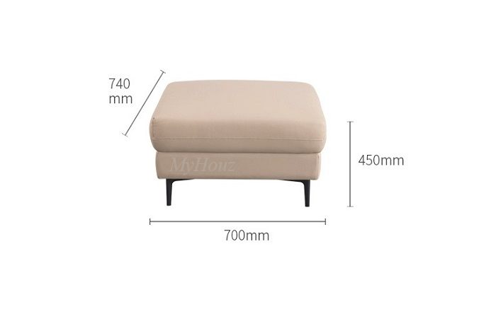 Materials: surface leather + protective cloth + pinevood frame + high density sponge + metal feet