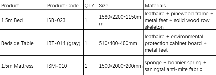 Total 11 Pieces Product Combo Package Living Room: Sofa & Padel+ Tea Table Dining Room: Dining Table & Chairs Bedroom: 1.5m Bed + Mattress + Bedside Table