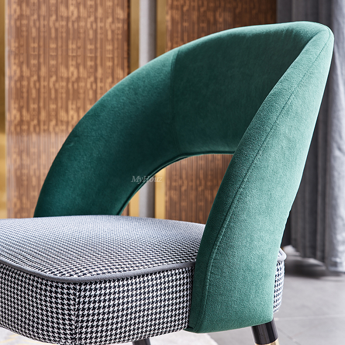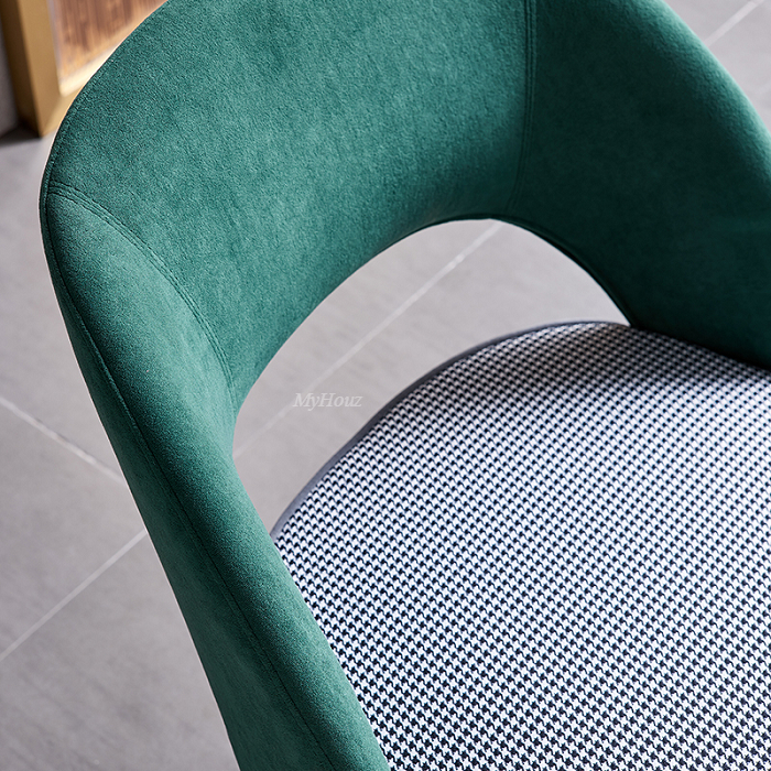 Materials: lint green backrest T1839-46 + black and white plaid pattern fabric seat with high rebound sponge filler + bright black metal legs