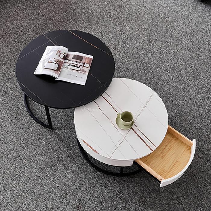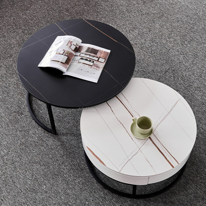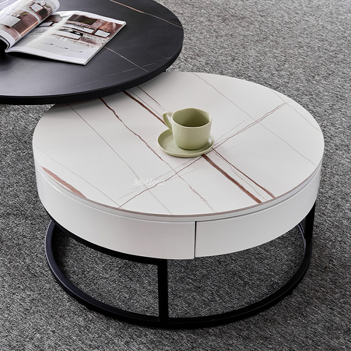 Small Tea Table:lauren white gold matte sintered stone countertop + protective cabinet +metal feet