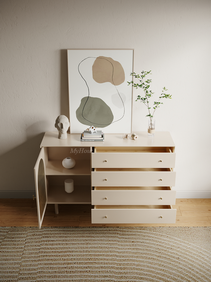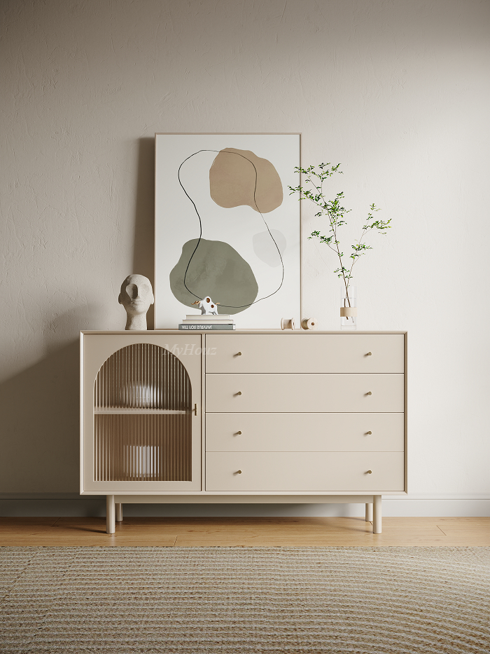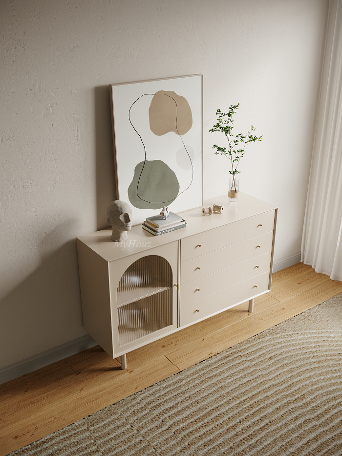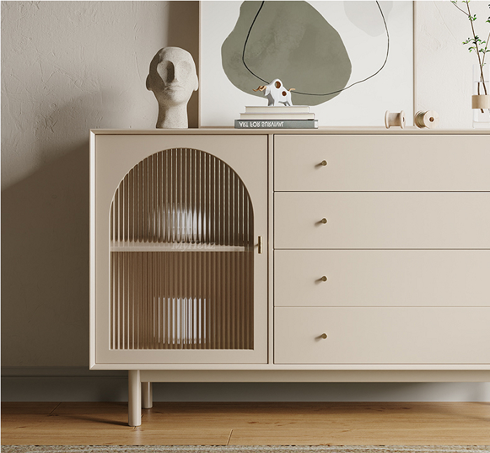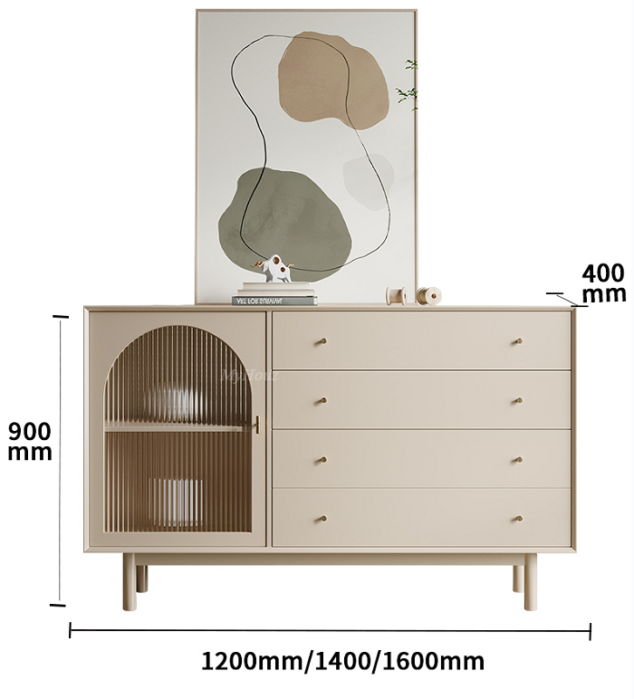 Materials: matte cream paint + environmental protection board + tempered glass + solid wood feet