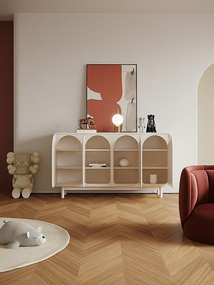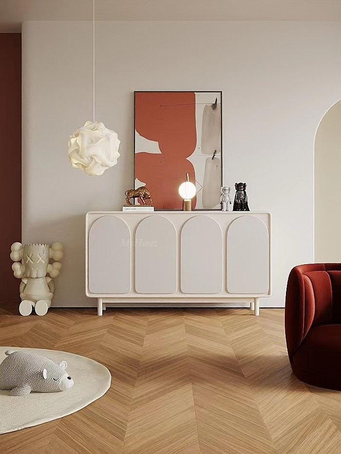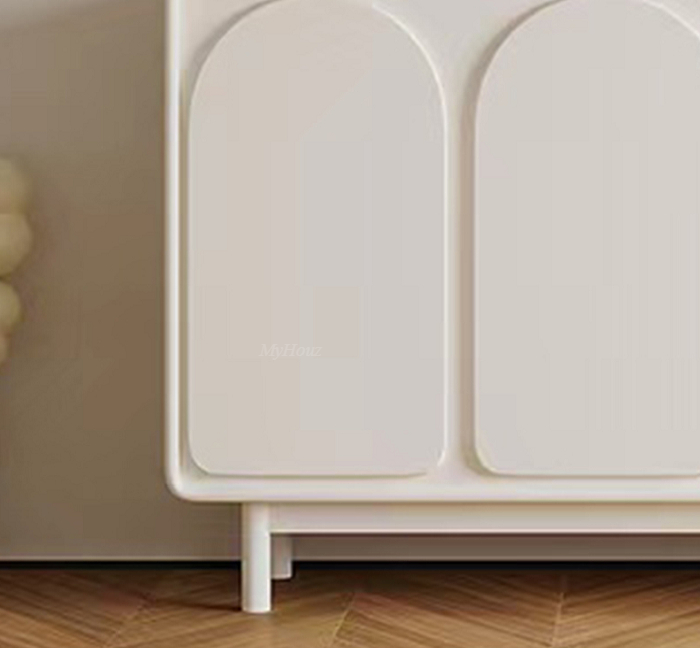 Materials: matte cream color lacquered + environmental protection board + solid wood feet