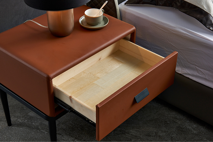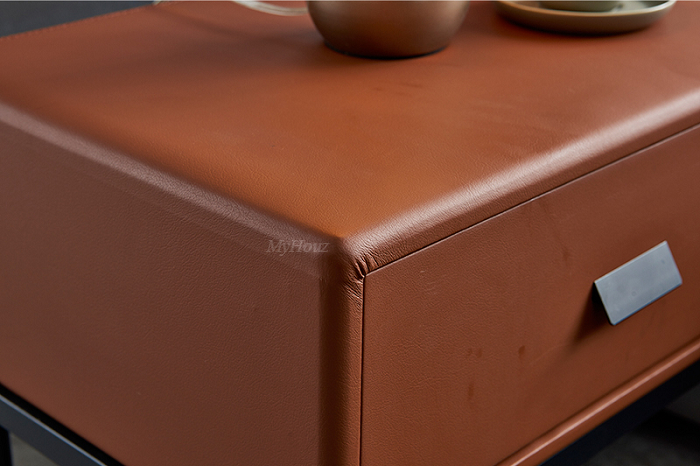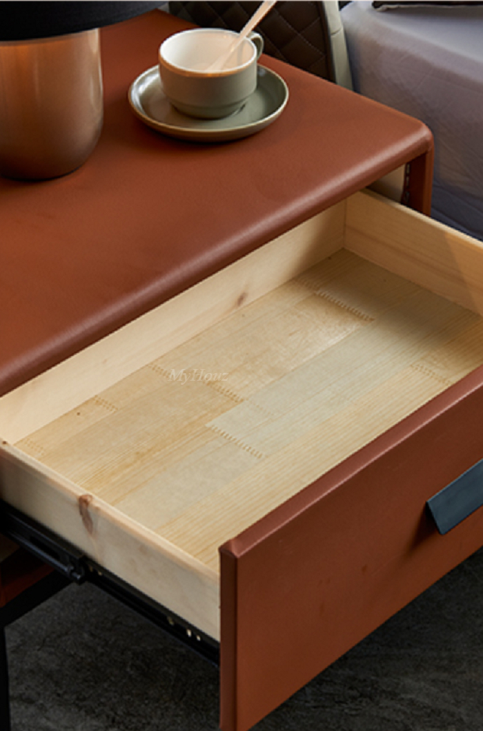 Materials: high density board + palpable Paper crafts + pine drawer + metal feet