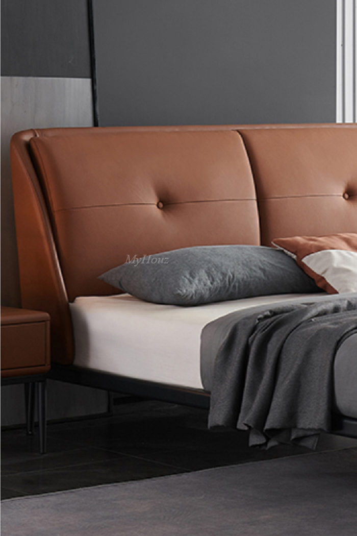 ②Soft version:contact surface top layer leather + pinewood frame+ metal feet + steel and wood row frame