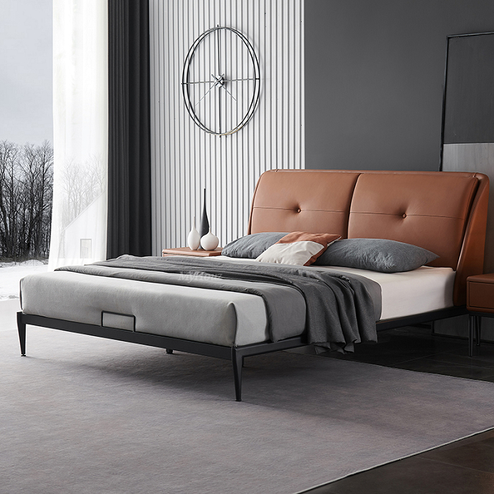 ①Iron frame version: contact surface top layer leather + pinewood frame+metal feet