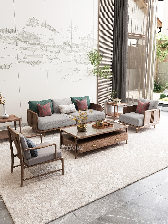 Four-seater sofa: 2 throw pillows + 2 lumbar pillows