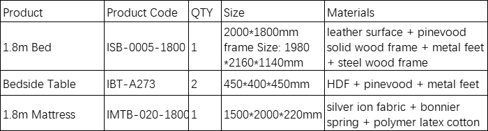 Master Room: 1.8m Bed + Mattress + 2*Bedside Table