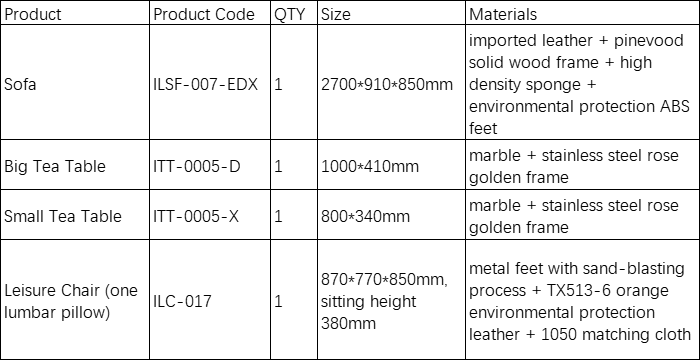 Living Room: Sofa+ Tea Table Set + Leisure Chair
