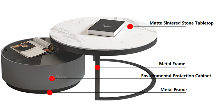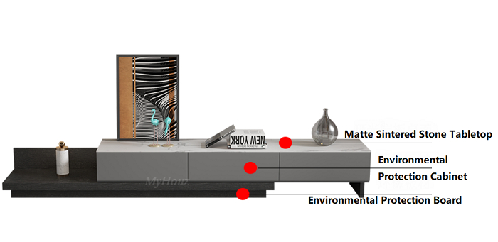 Materials: Matte snow white sintered stone tabletop + environmental protection cabinet