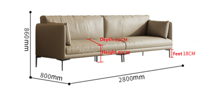 Materials:  leathaire fabric + high rebound sponge + metal feet + solid wood frame