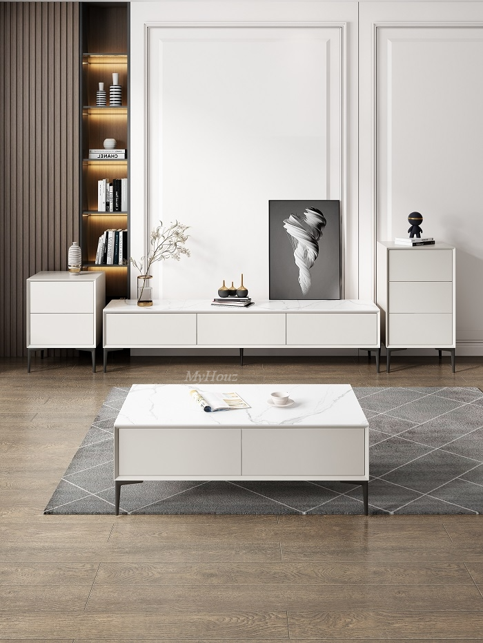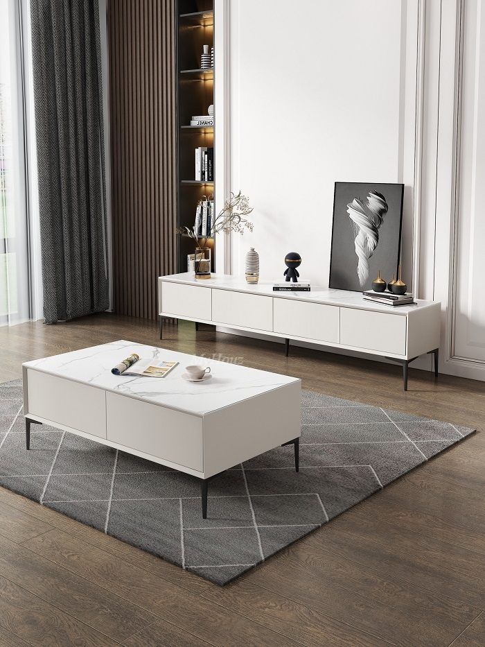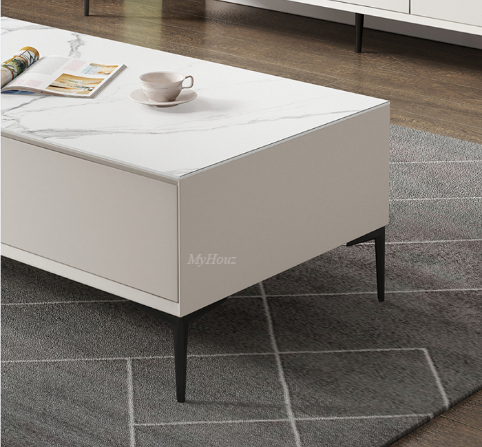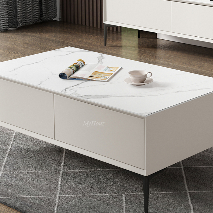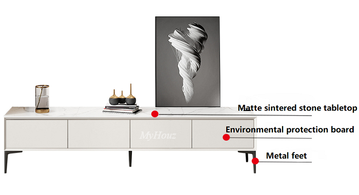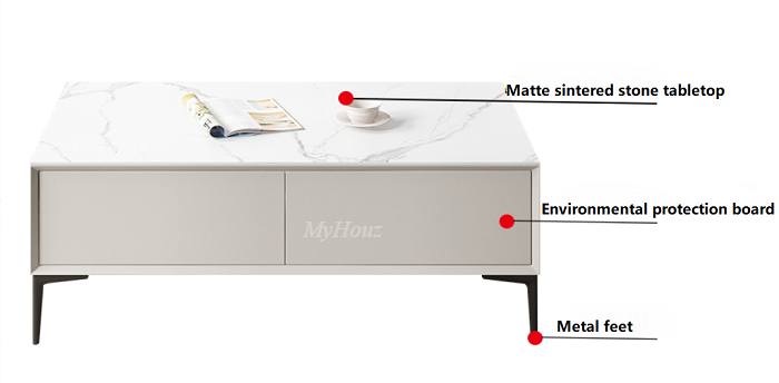Materials: snow white sintered stone tabletop + environmental protection board + metal feet