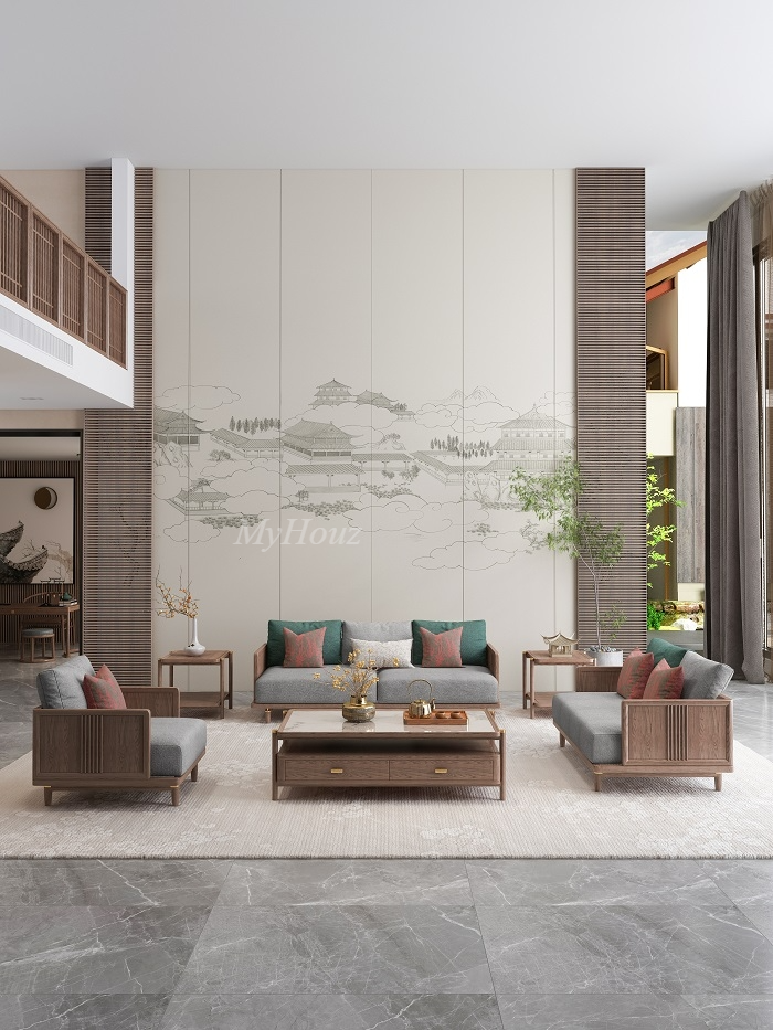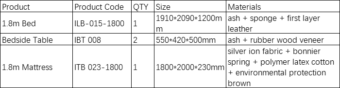 Total 19 Pieces Product Combo Package Living Room: One Set Sofa+Leisure Chair + Tea Table + End Table Dining Room: Dining Table & Chair Bedroom: 1.8m Bed + Mattress + 2*Bedside Table Tea Room: Tea Table + Tea stools